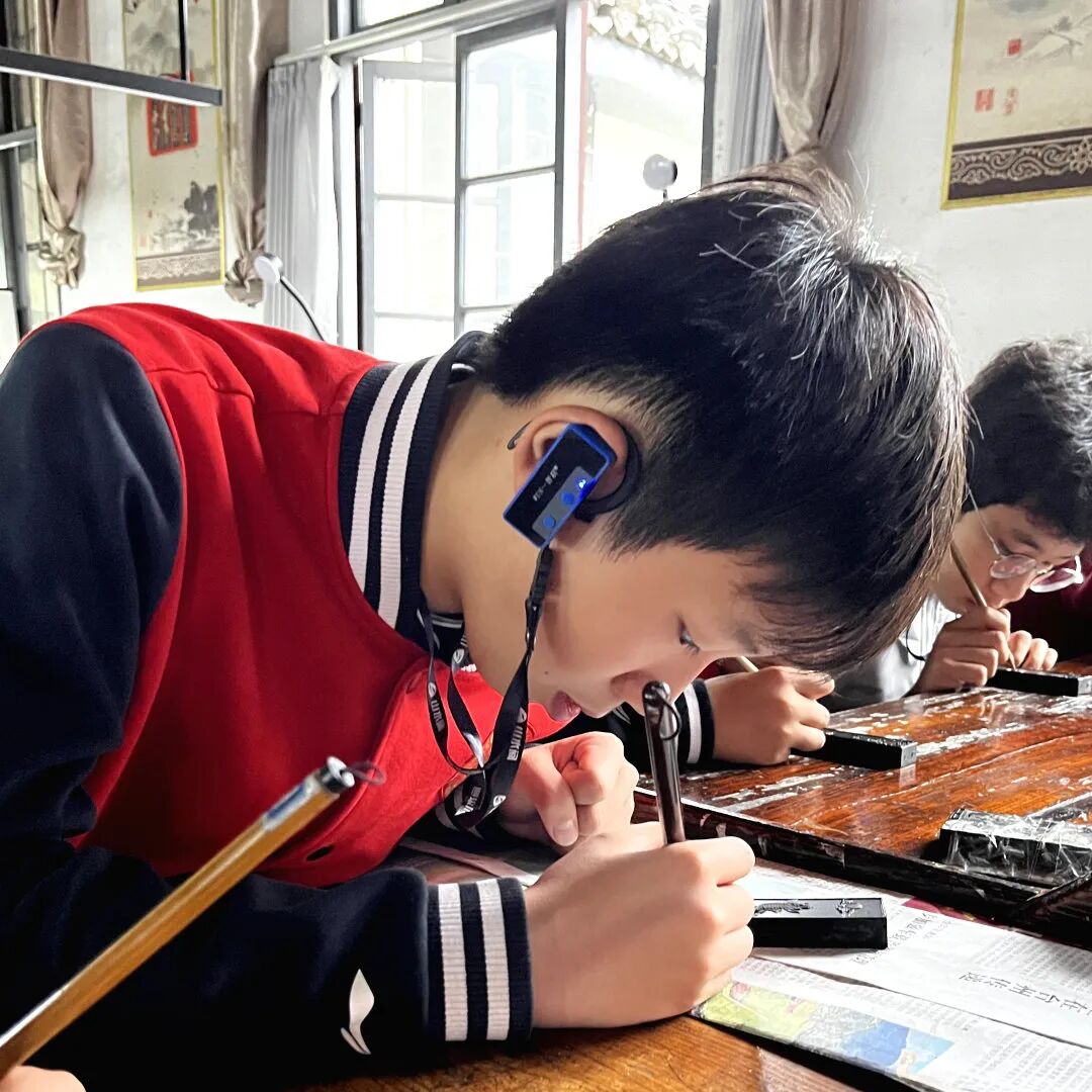 而兰亭——旅途的第二站,因王羲之“天下第一行书”的名作《兰亭集序》而名闻海内外。相传春秋时期越王勾践曾在此植兰,汉时设驿亭,故名兰亭,后因修禊传统逐渐演变为士大夫文人的水畔雅集,即曲水流觞:游戏者临坐水畔,任由置于水面上托盘内的酒杯顺水漂流,杯停所在的游戏者即兴赋诗。孩子们围坐一团,也体会了下文人墨客的这般雅兴。