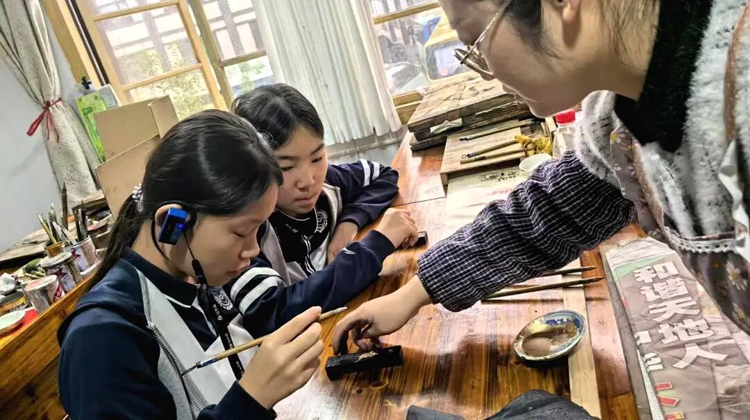 “明月照山河,黄梅戏声起”。黄梅戏,原名黄梅调、采茶戏,与京剧、越剧、评剧 、豫剧并称“中国五大戏曲剧种”,是安徽省的主要地方戏曲剧种。它的唱腔淳朴流畅,以明快抒情见长。此刻孩子们换上戏装,“手、眼、身、法、步”,丰富的表现力,让他们宛若真实降临到生动活泼的曲艺殿堂。