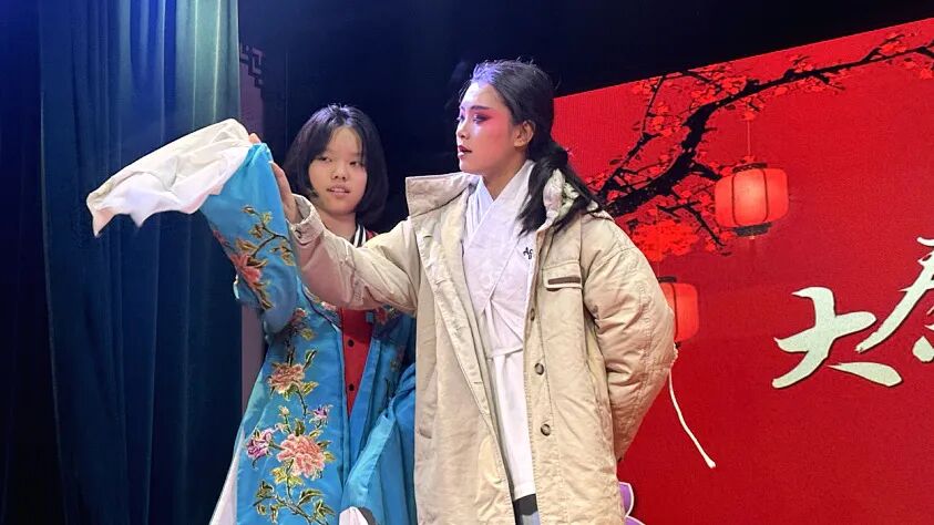 “明月照山河,黄梅戏声起”。黄梅戏,原名黄梅调、采茶戏,与京剧、越剧、评剧 、豫剧并称“中国五大戏曲剧种”,是安徽省的主要地方戏曲剧种。它的唱腔淳朴流畅,以明快抒情见长。此刻孩子们换上戏装,“手、眼、身、法、步”,丰富的表现力,让他们宛若真实降临到生动活泼的曲艺殿堂。