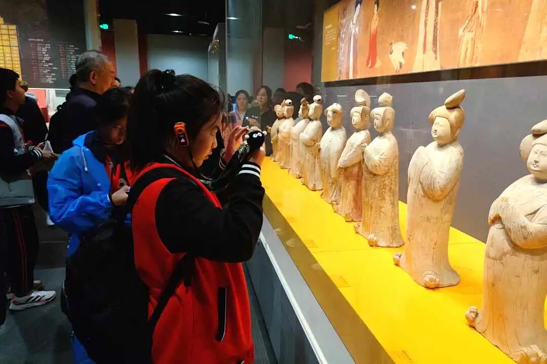 而来到西安博物院,则更直观感受到了时代的脉搏:为数不多的“唐代密檐式”砖还悬在小雁塔上经历着风雨沧桑,馆内历代文物更鲜活撰写着关于这座城的朝代更替史:夏初的青铜器、商中逐渐出现的铭文和精细花纹、西周早期逐渐繁缛富丽的花纹、春秋晚期至战国被推广的铁器、以及秦汉时期逐渐进入日常生活的陶器和漆器。