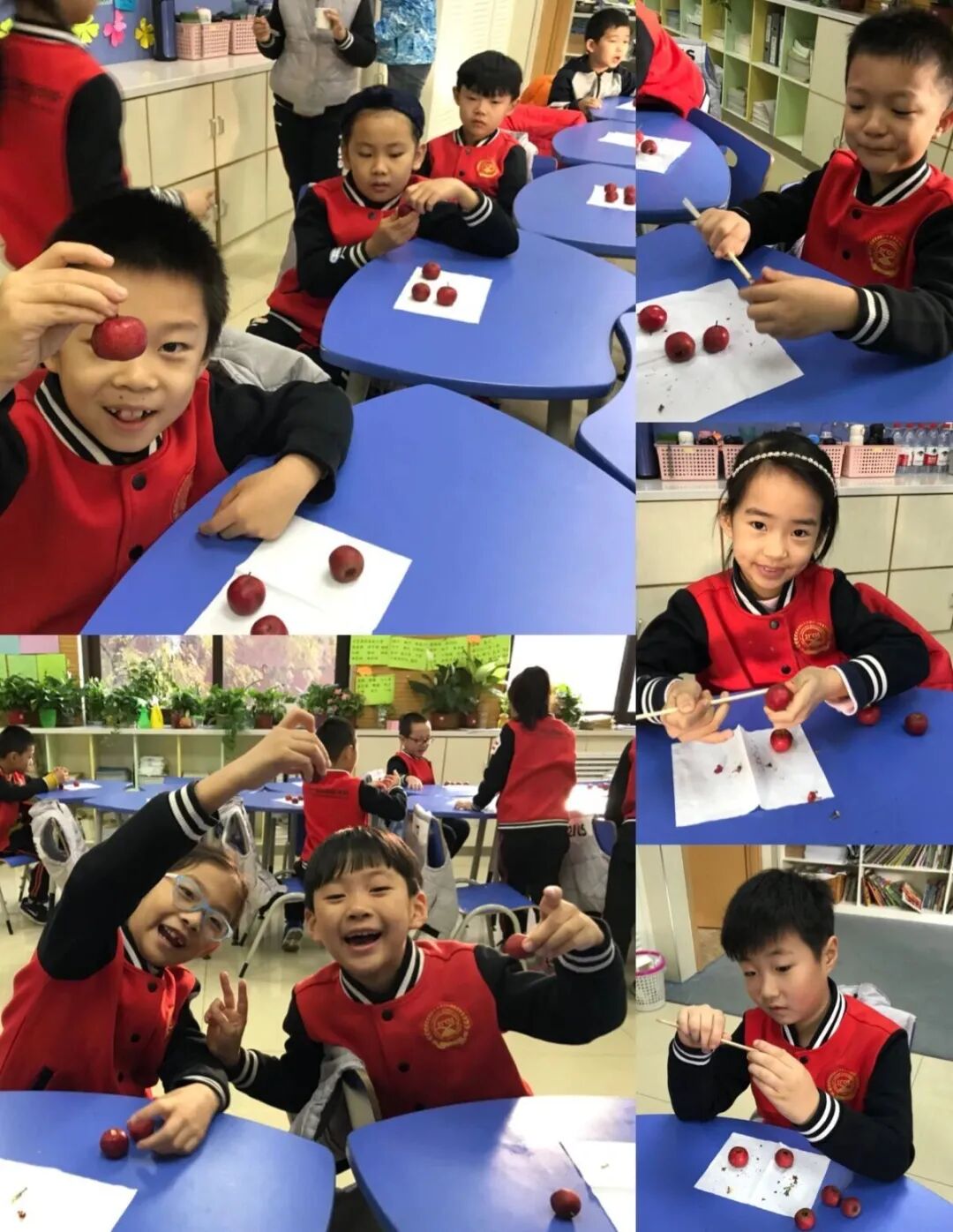 我校小学1—5年级实施主题式课程,主题式课程是落实学校全人教育理念的重要抓手,更是承载劳动教育的重要载体。例如,在孩子们学习“蒜宝宝成长日记”主题时,亲自动手种植蒜苗,按时给蒜苗浇水、施肥,最后收获自己劳动的果实;在学习“北京传统小吃”时,孩子们和老师一起洗山楂、穿串,蘸冰糖汁,学做老北京冰糖葫芦;在学习《家》的主题时,孩子们给家人做爱心早餐……