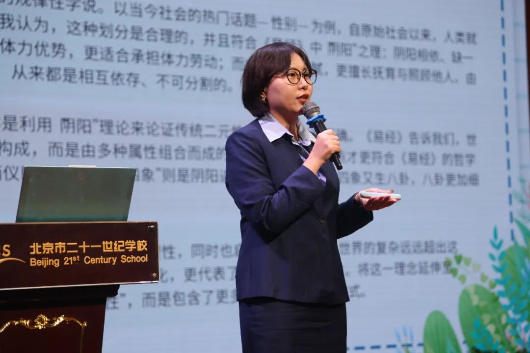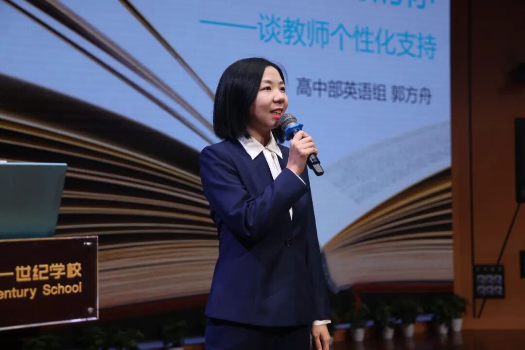 夏老师围绕“教学篇”和“管理篇”分享自己的教育心得。在教学中,老师们有这样的困境:同一个知识点,学生有不同的追问;同一份AP试卷,成绩也是千差万别。作为AP经济学老师,她根据学生的多样性,优化教学方法;实施个性化分层教学,分基础、进阶、拓展三层进行;为不同特点的学生制定不同的考试策略,如心理建设、时间管理、错题原因分析,做到个性化。在管理上,夏老师打造班级个性化的“三阶模型”。第一阶:氛围赋能——打造归属感,第二阶:价值引领——激发成就感,第三阶:个体关怀——给予安全感。所做的一切,都是让每一个个体都找到最适合自己的航向。
