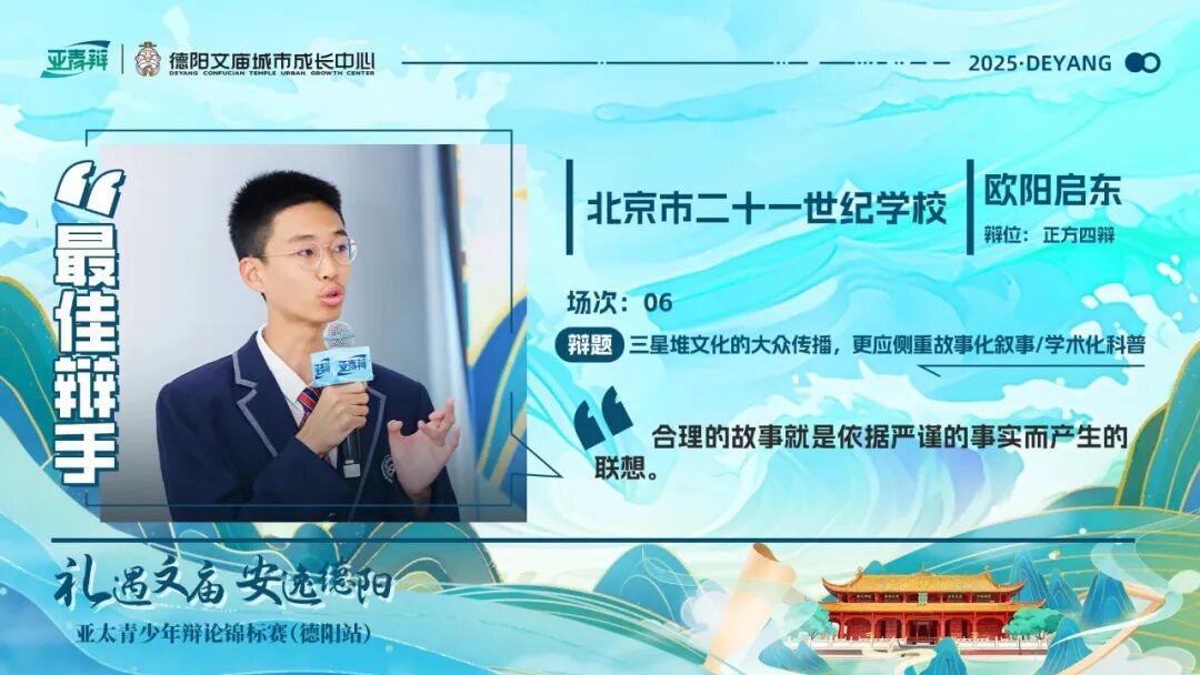 在四川德阳举行的2025亚青辩论赛,汇聚了亚太地区知名高校及中学的辩论队,覆盖大学组、高中组等不同年龄段。