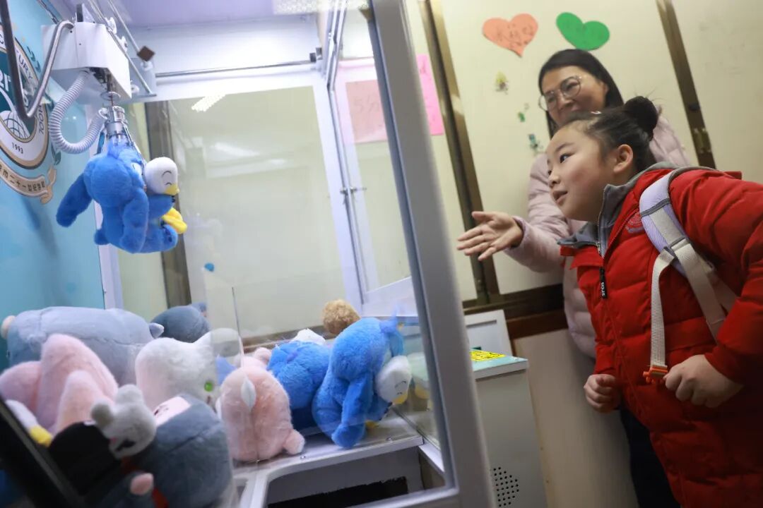 很多孩子都曾在商场的抓娃娃机前挫败而归,眼巴巴看着玻璃框里五颜六色的娃娃却抓不住。(悄悄告诉你,那机器商家都能自己调节哦!)我们小学这款娃娃机经过老师精心“调教”,能一次弥补你久抓不中的遗憾!抓一次20分,只要不出意外,都会有意外的惊喜!没抓到也别失落,还可以去5分积分卡奖品区任选一件当纪念品。