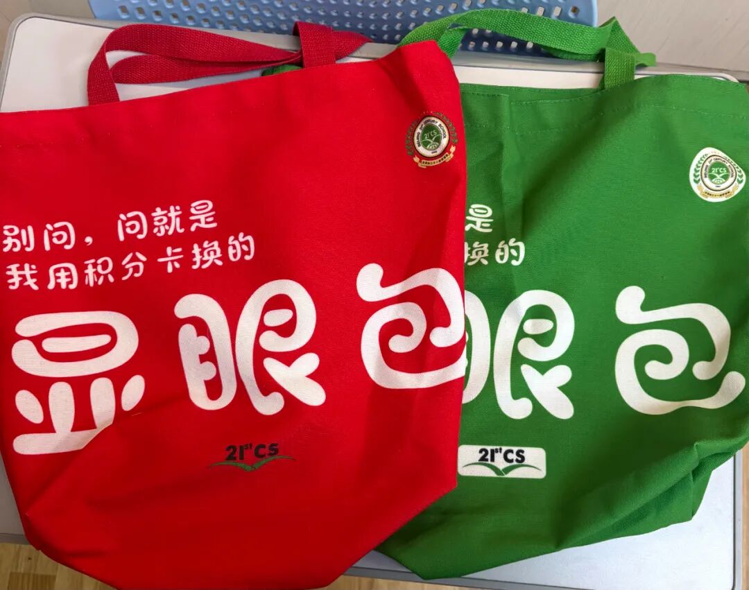 “别问,问就是我用积分卡换的”这牛气哄哄的拽文印在大红大绿的帆布包上,再配以呆萌的“显眼包”三个大字,背着它走在校园里该有多霸气!21CS定制款显眼包结实、大容量,足以盛得下孩子们在学校收获的快乐和知识!30分积分卡一个,昨天小店一开张,就被“抢走”10个!“购买”显眼包还可以在5分积分卡区域任选一件当赠品。
