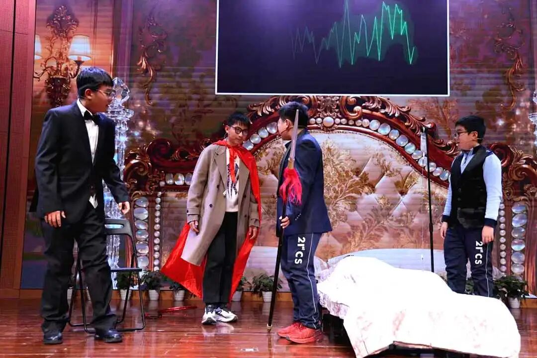 聚光灯亮起,舞台帷幕拉开,初中部名为“‘马’上有好戏”的学科创意盛宴在这里上演,下午、晚上两场精彩放送让大家意犹未尽。