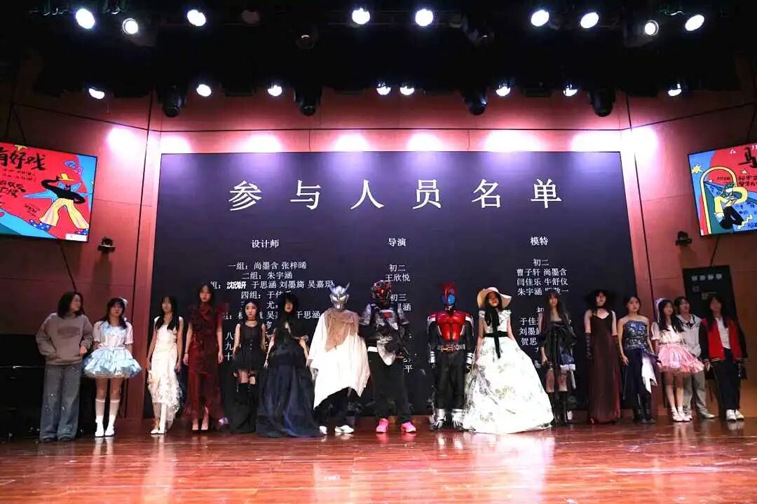 “戏”中生“衣”服装秀将创意过程完整呈现在观众面前。从“超级英雄的紧身衣”到“塔拉庄园的风声”,每一件服装都是一个少年眼中的宇宙正义。当设计从草稿纸走上T台,抽象的概念变成了具体的作品,这是设计思维最生动的教学案例——发现问题、构思方案、创造原型、测试改进,完整的设计流程在一个个服装作品中得以体现。