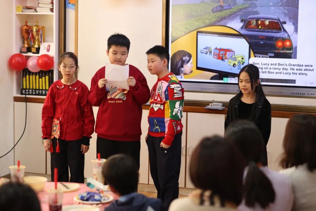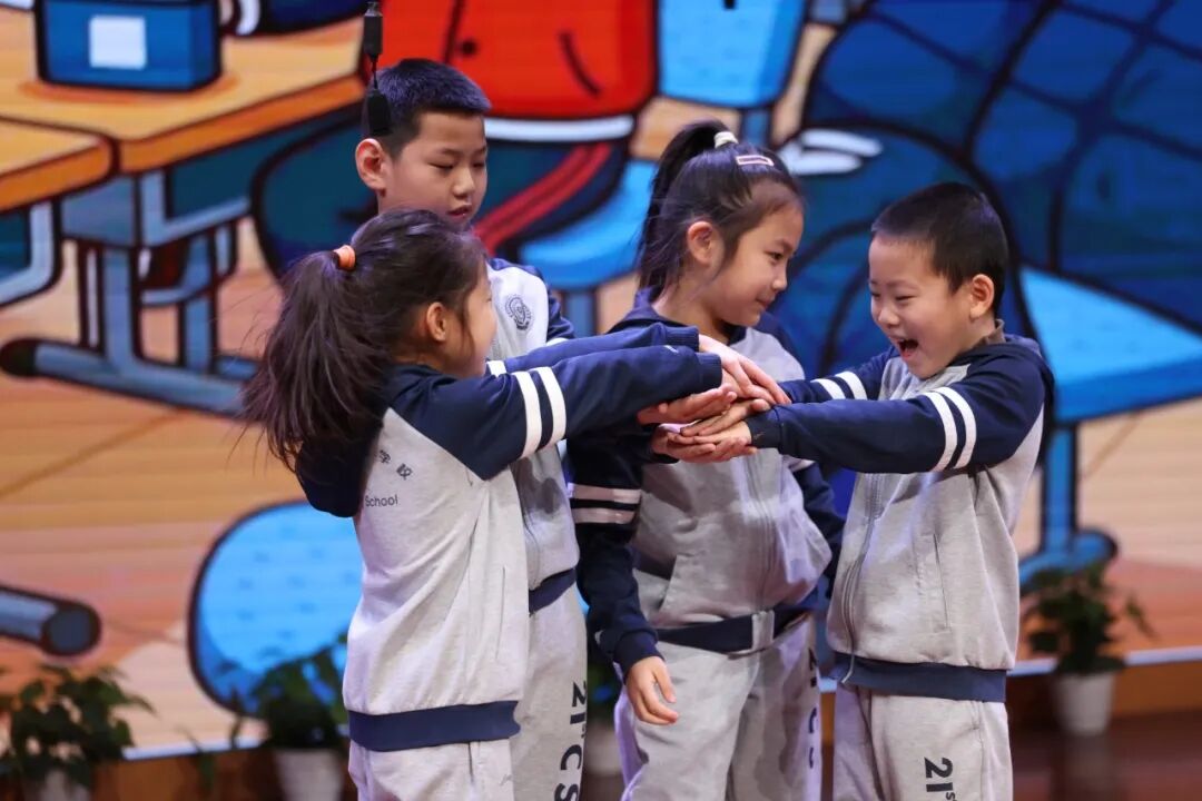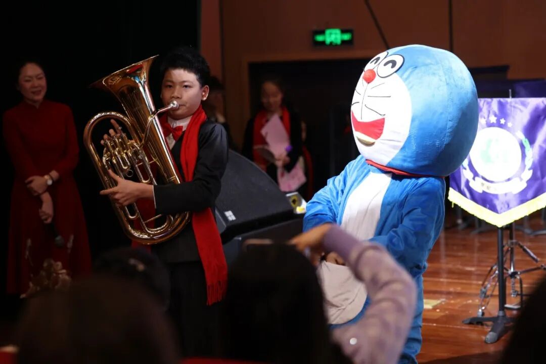 周恩来、孔子、雷锋、钱学森、宋庆龄等名人是成长的精神灯塔,孩子们深入学习他们的故事,并用英文演讲分享所学所思。匹诺曹、小红帽、狮子王、三只小猪、白雪公主、姜饼人……孩子们化身童话人物,载歌载舞,在舞台上共同演绎英语话剧,将学习的单元主题再次升华。中英文朗诵、歌唱、舞蹈、三句半……二至六年级的五个名人班,将在班级建设中汲取的名人精神演绎成精彩的节目。主题“过节啦”结题仪式,在喜庆的氛围中,孩子们学知识的同时读懂传统节日的意义。年级期末表彰,让每一次努力都能被看见,让每一种精彩耀眼绽放。小学新年音乐会,管乐团带来的音乐盛会让这一年回味无穷。观看高中大哥哥大姐姐带来的经典英语音乐剧《了不起的盖茨比》……考试不是终点,寒假前的这一周,是孩子们享受同伴温暖、多彩校园的宝贵时光。我们用全方位、多维度的活动,潜移默化地帮孩子树立正确的学习观,从容面对考试,合理规划学习,在细水长流的日子里,不断超越自我,获得全面发展。